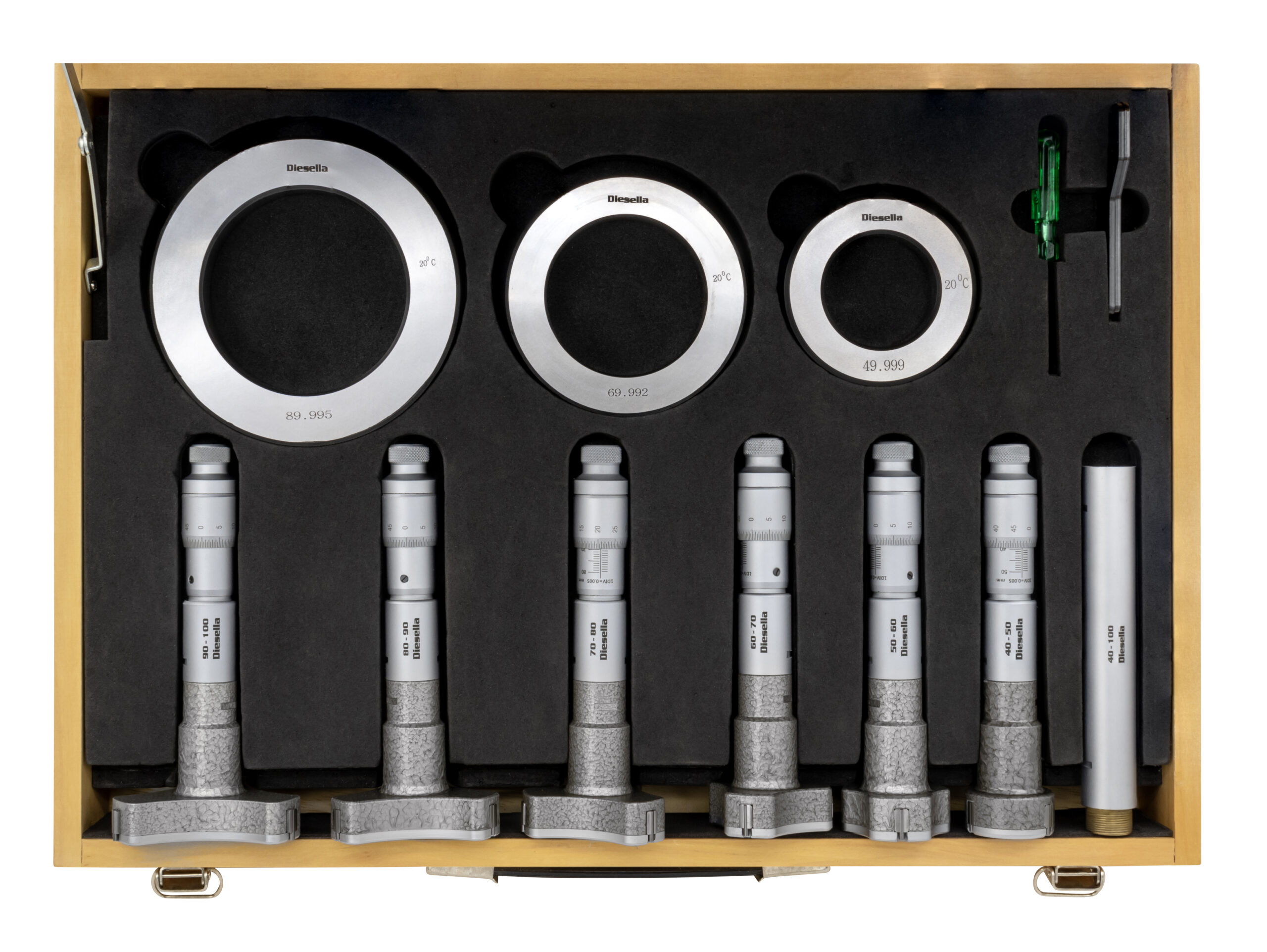 Rustfri mikrometer med mat forkromet udførsel som giver blændfri aflæsning. Måleflader er belagt med hårdmetal og måletromlen har tydelig, sort skala og skralde. Kan anvendes til bundhuller. Aflæsning: 0,05 mm. Leveres i trækasse inkl. kontrolringe. • Måleområde 40-100 mm • Måleflade i hårdmetal • Inkl. kontrolringe