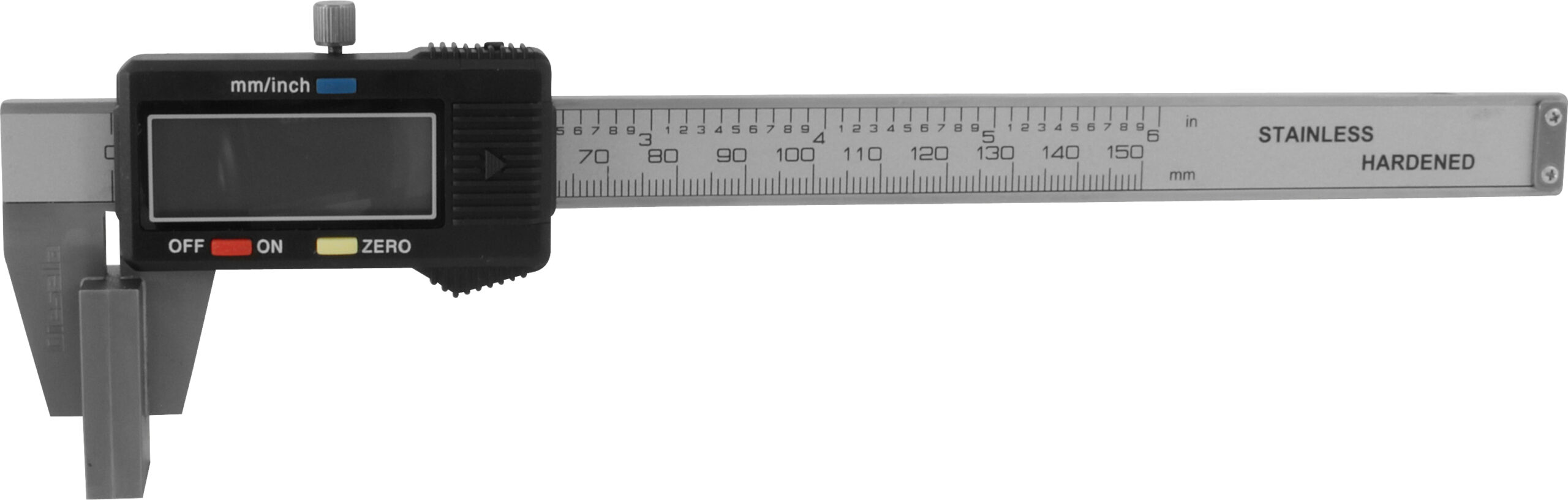 Digital skydelære med ind- og udvendige hårdmetalkæber. Måler fra 0-150 mm med 0,01 mm aflæsningog kæbelængde på 40 mm. Manuel on/off, nulstilling, omskifter fra mm til tommer, fladt dybdemål. Leveres i en robust plastkasse til opbevaring. Batteri: 1xLR44 medfølger. • Hårdmetal måleflader på både udvendige og indvendige kæber • Mono-block (forlænger levetiden på skydelæren) • Stort LCD display