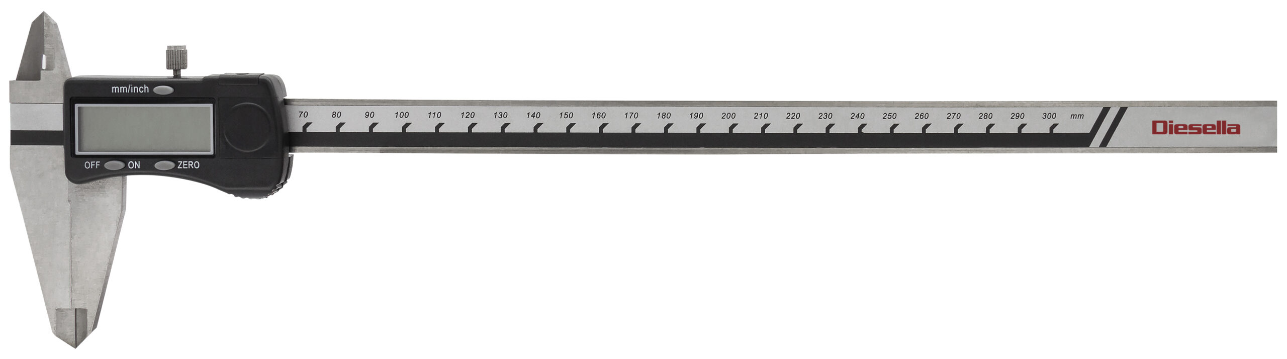 Standard digital skydelære i rustfrit stål med robust metalhus. Måler fra 0-300 mm med 0,01 mm aflæsning og kæbelængde på 60 mm. Automatisk tænd/sluk funktion, nulstilling, mm/decimal, tommer/brøkvisning, fladt dybdemål. Leveres i en robust plastkasse til opbevaring. Batteri: 1xLR44 medfølger. • Robust metalhus med stort display og tydelig kontrast • Automatisk tænd/sluk funktion • Kæber er udført i hærdet, rustfrit stål