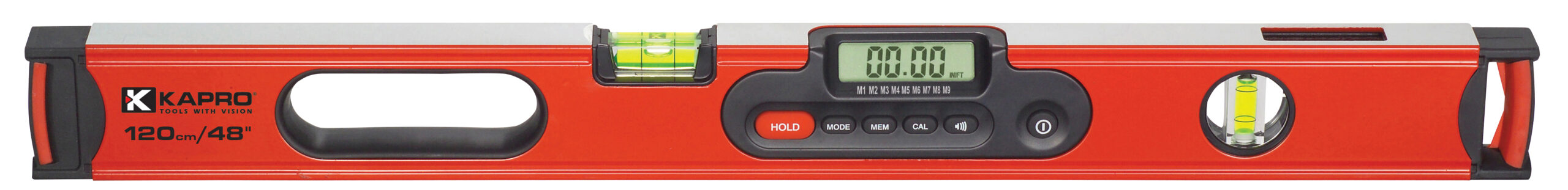 Professionelt digitalt vaterpas der indeholder alle de bedste vaterpas koncepter og funktioner. Det oplyste LCD display gør det nemt at aflæse. Vaterpasset har memory recall, som husker de sidste 9 målinger og summer ved 0°, 45° og 90°. Med Hold & Mode funktion og grad/ procent/ mm. Vaterpasset erdesuden udstyret med 2 stk. stødsikre akryl libeller med Plumb Site® Dual-View™ libelle - som gør det muligt at aflæse den lodrette libelle fra toppen af vaterpasset for bedre ergonomisk stilling. Neodymium magneter i bunden. Ergonomisk udformet håndgreb og 2 fræste sider. Digital nøjagtighed: < 0,1° og < 0,2° på andre vinkler. Batteri: 2xAA medfølger. • Aflæs digitalt via display elleranalogtvia de 2 slagfaste akryl libeller • Oplyst LCD display med 180° aflæsning og summer ved 0°, 45° og 90° • Med Hold & Mode funktion og grad/procent/pitch • Memory recall, som husker de sidste 9 målinger • Plumb Site® Dual-View™ • Neodymium magneter i bunden • Ergonomisk håndgreb