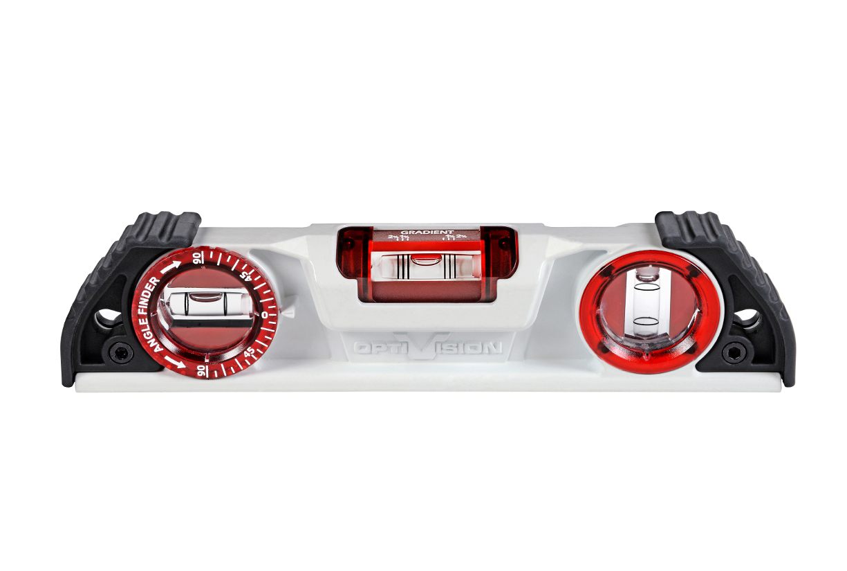 Professionelt og ekstremt holdbart torpedo vaterpas baseret på en moderne asymmetrisk profil, der inkluderer en "libelle-bro" for ekstra styrke og dobbeltkomponent-polstret stødabsorberende ender. Vaterpasset er udstyret med 3 stk. stødsikre akryl libeller - 1 stk. vertikal, 1 stk. horisontal og 1 stk. der kan indstilles 90°-45°-90° (gradfinder) - der indeholder den revolutionerende OPTIVISION™ teknologi: Rød hætteglas-teknologi, der øger synligheden af hætteglasset med op til 8 gange sammenlignet med konventionelle hætteglas og Plumb Site® Dual-View™ libelle, som gør det muligt at aflæse den lodrette libelle fra toppen af vaterpasset for bedre ergonomisk stilling. Vaterpasset har desuden en hældningsgrad på 1% og 2% og er udstyret med neodymium magneter, fræst overflade i bunden og V-spor til måling af rør. Nøjagtighed 0,5 mm/m. Tolerance 0,5 mm/m. VPA certificeret. • 3 slagfaste akryl libeller med revolutionerende OPTIVISION™ teknologi - 1 stk. vertikal, 1 stk. horisontal og 1 stk. der kan indstilles 90°-45°-90° (gradfinder) • Neodymium magneter i bunden • Plumb Site® Dual-View™ libelle for god ergonomi • Forstærket profil • "Libelle-bro" • OPTIVISION™ teknologi for op til 8 bedre synlighed • V-spor til måling af rør • VPA certificeret