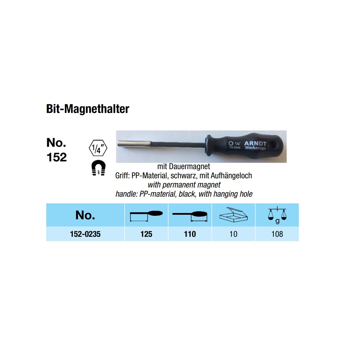 ARNDT bits skruetrækker 1/4″ til btis
