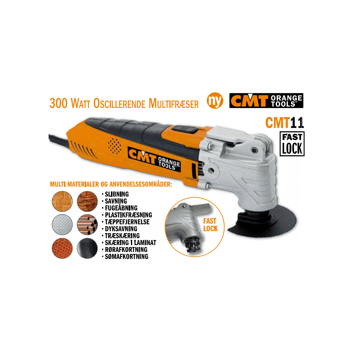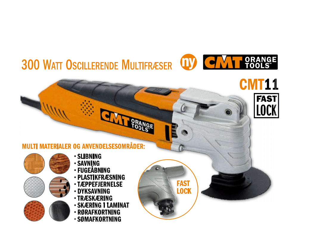 Multi cutter fra CMT har FAST LOCK så den er dem at betjene passer også til DeWalt klinger og Bosch eller FEIN multimaster.