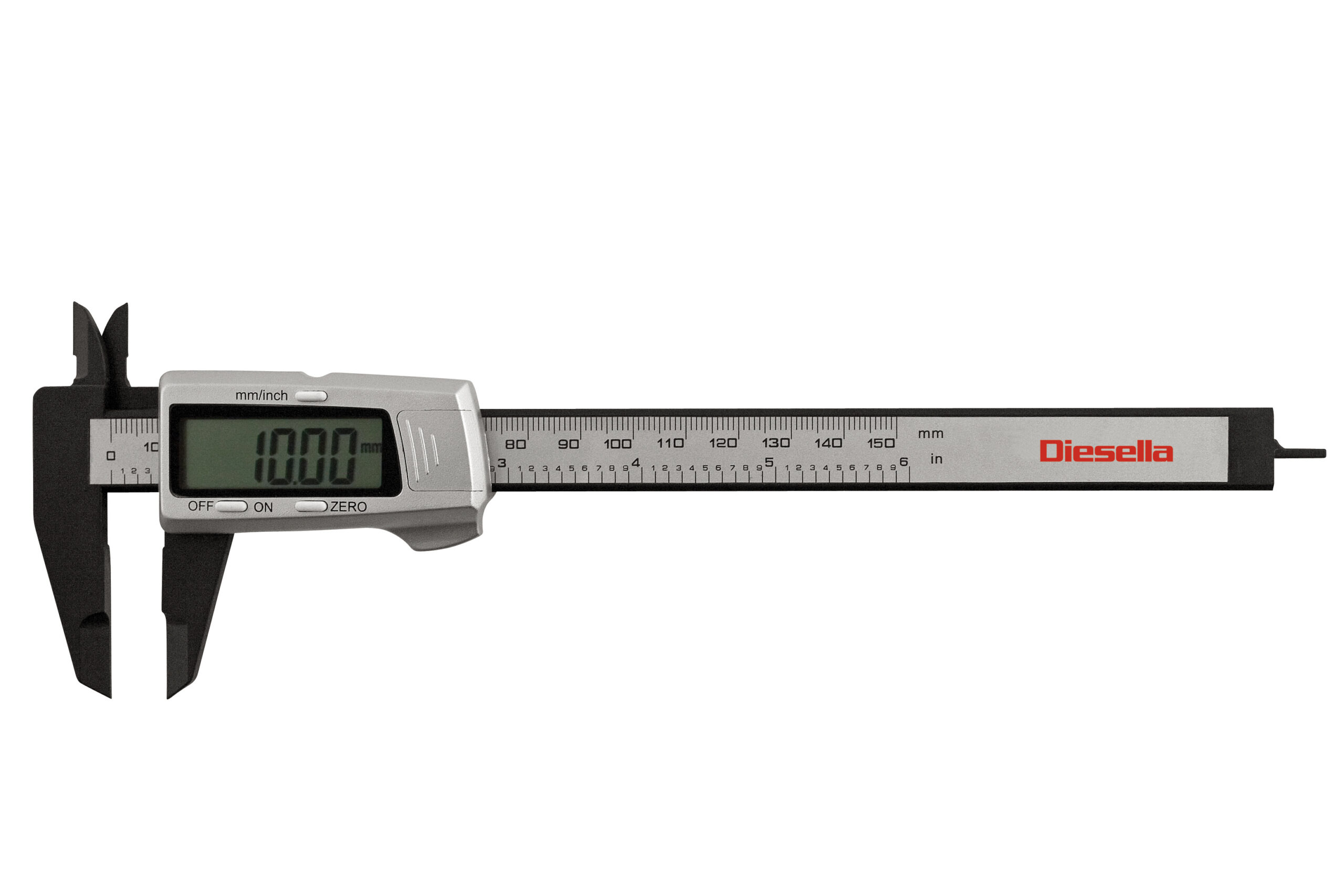 Måler fra 0-150 mm med 0,01 mm aflæsning og kæbelængde på 40 mm. Automatisk tænd/sluk funktion efter ca. 5 min. stilstand. Veksling imellem mm og tommer. Fladt dybdemål.