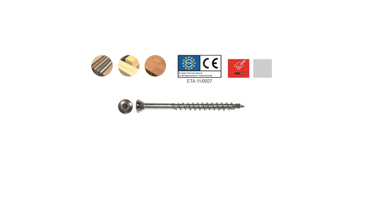 Linsehovedet spånskrue i rustfri A4 (syrefast) med TX kærv og del- eller fuldgevind.