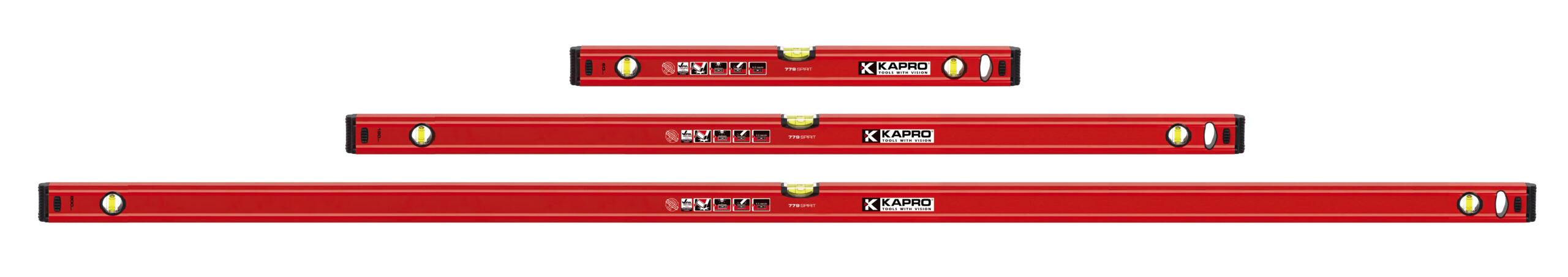 Sæt med 3 vaterspas i størrelserne 600 mm/ 1200 mm / 2000 mm. SPIRIT er det ultimative kvalitets vaterpas til prisen!Sættet indeholder: 1 x 10461120, KAPRO SPIRIT vaterpas 60 cm1 x 10461150, KAPRO SPIRIT vaterpas 120 cm1 x 10461170, KAPRO SPIRIT vaterpas 200 cmVaterpasset leveres med bearbejdede anlægsflader for ekstra nøjagtighed, stødabsorberende ende kapsler samt væggrebsfunktion, som forhindrer at vaterpasset glider i den holdte position. Nøjagtighed 0,5 mm/mtr. Tolerance 0,5mm/mtr.• Kvalitets vaterpas til prisen• “Væggreb”-funktion• 3 acryl-libeller