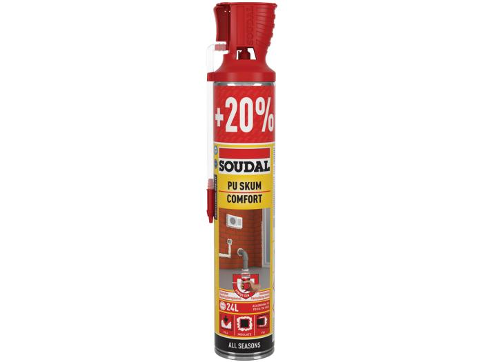 Soudafoam Comfort er en klar til brug enkomponent selv ekspanderende Polyurethan skum. Grundet det patenterede Genius Gun system er påføring af PU skum meget enkelt og præcist. Doserings røret kan forsegles hvilket gør det muligt at fortsætte med påføring fra en delvis fyldt dåse, selv efter flere uger.