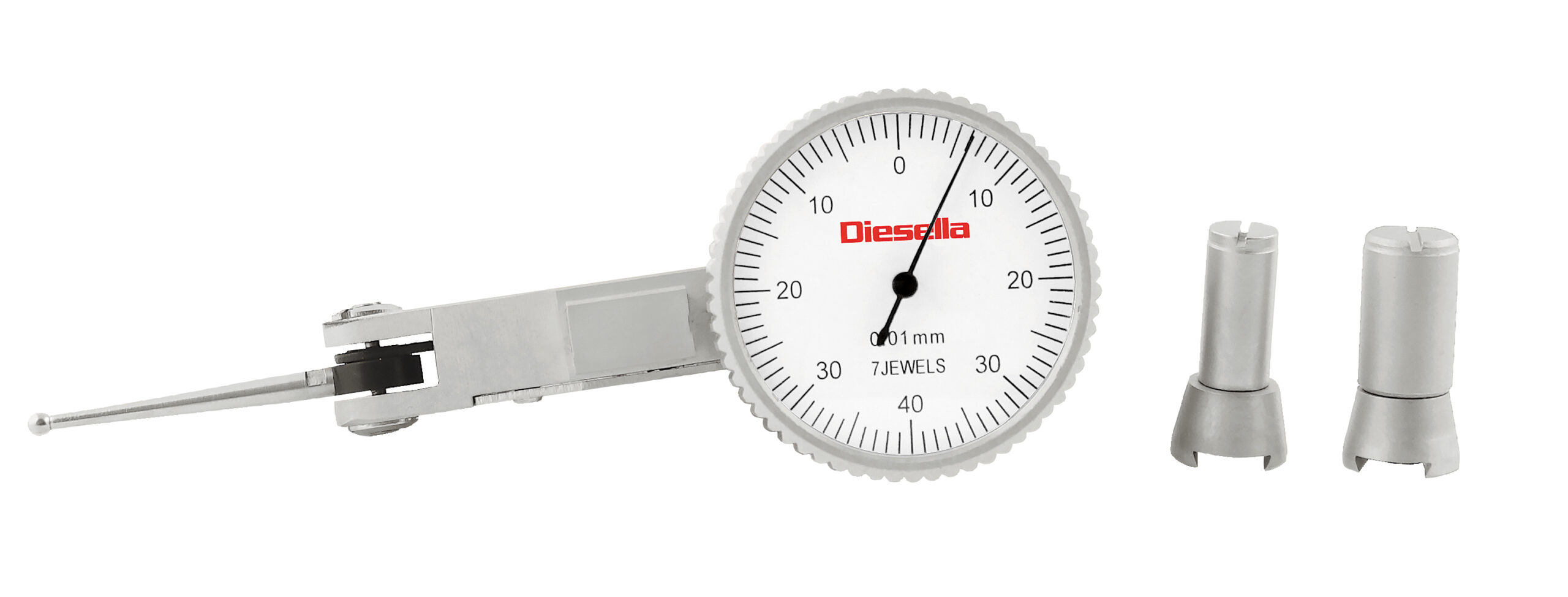 Vippeindikator med hvidt standard måleur inkl. 3 x svalesporet opspænding.
